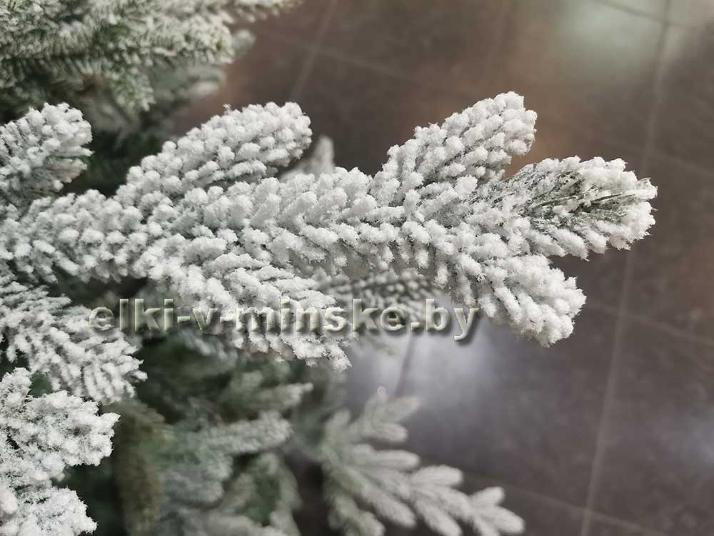 Ель усыпана качественным искусственным снегом. Такой снег не осыпается, не желтеет и не воняет.