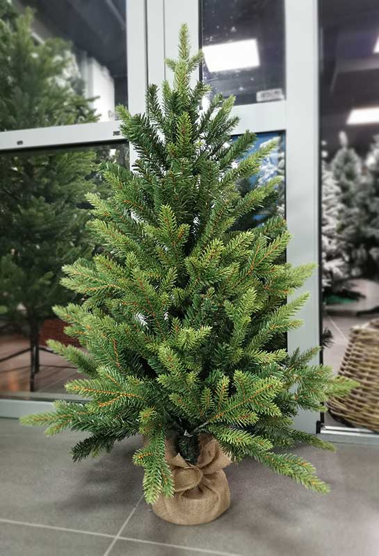 Эта елка имеет 428 веток, что позволяет ей выглядеть очень пышной и насыщенной. Она упакована в индивидуальную упаковку размером 0,84 * 0,17 * 0,17 м, что обеспечивает ее безопасную доставку. Подставка выполнена в виде декоративной мешковины из льняной ткани и утяжелена, что обеспечивает устойчивость елки.