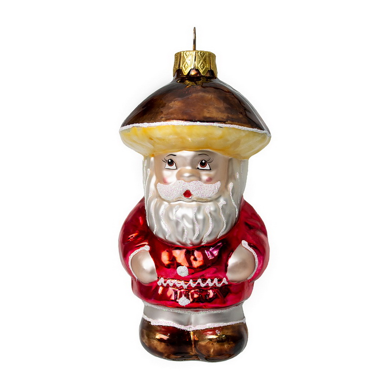 Елочная игрушка стеклянная декорированная Гриб Лесовик 12 см