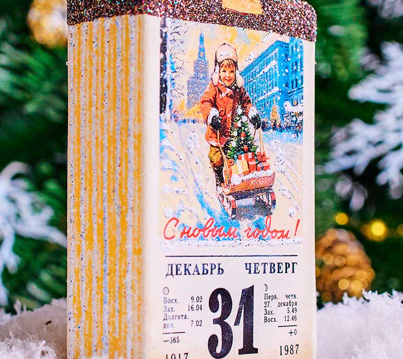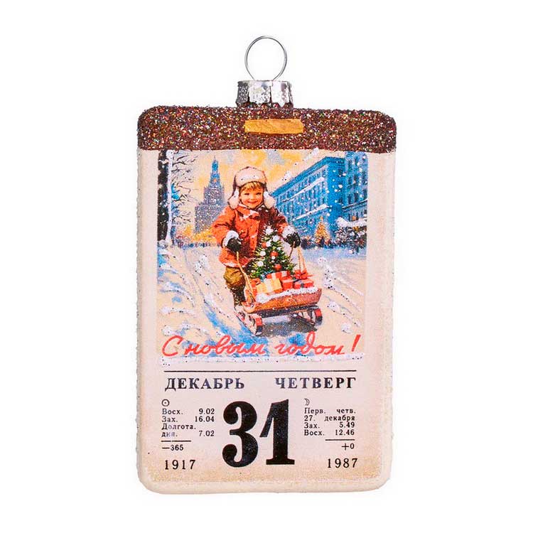 Елочная игрушка стеклянная декорированная Календарь 10 см