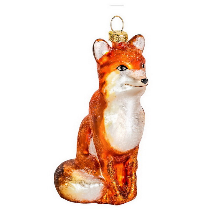 Елочная игрушка стеклянная декорированная Лиса 12 см