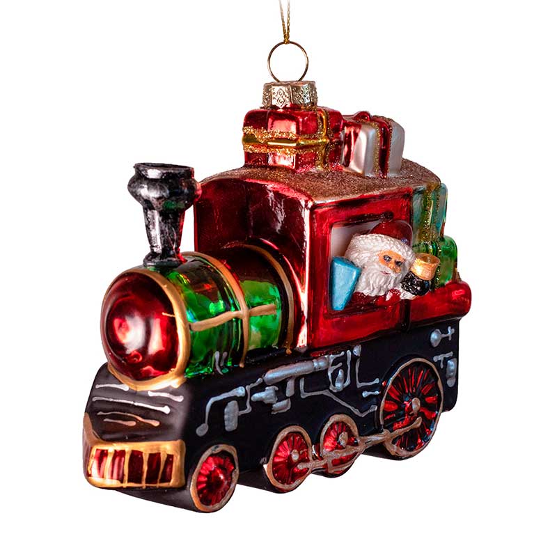 Елочная игрушка стеклянная Поезд с Санта-Клаусом 11 см