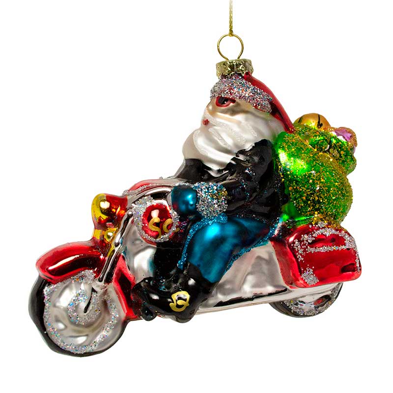 Елочная игрушка стеклянная Санта на мотоцикле 8 см