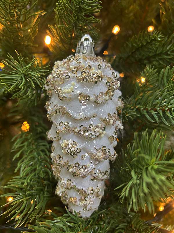 Набор Ёлочных украшений, Шишки, 3 штуки, 11 см, глянцевые, белый, материал - пластик, в ПВХ коробке