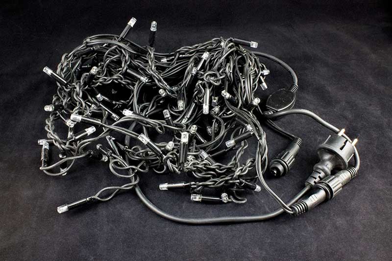 Бахрома 3м, 120л, каучук, расстояние между лампами 10см, расстояние между полосами 12,5 см, 24 нитей, черный провод, 3 мм,