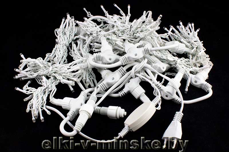 Бахрома 3м, 120л, каучук, расстояние между лампами 10см, расстояние между полосами 12,5 см, 24 нитей, белый провод, 3 мм,