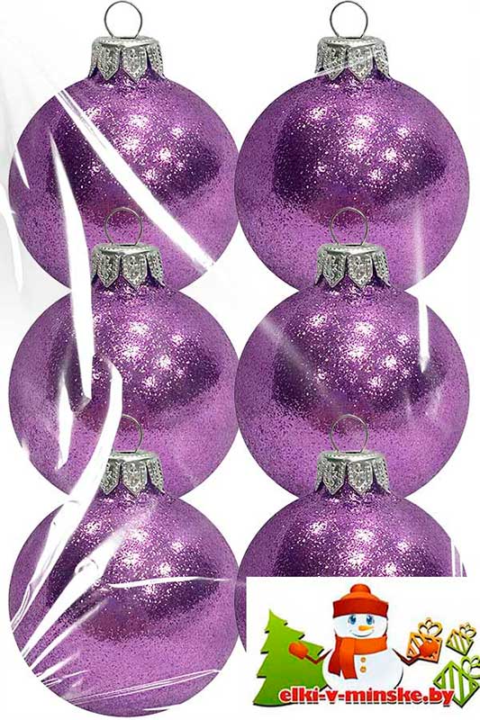 Набор пластиковых шаров диаметром 6,5см. В наборе: 6 шаров лиловогоцвета, покрыты ровным блестящим глиттером. Материал: пластик.