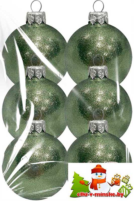 Набор пластиковых шаров диаметром 6,5см. В наборе: 6 шаров оливкового цвета, покрыты ровным блестящим глиттером. Материал: пластик.
