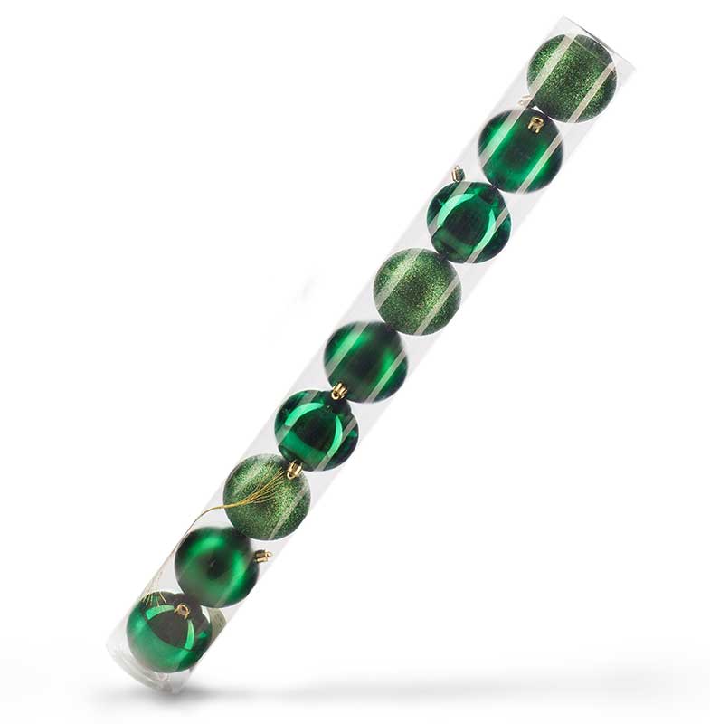 Шар пластиковый 8 см 9 шт парча, мат, глянец зеленый